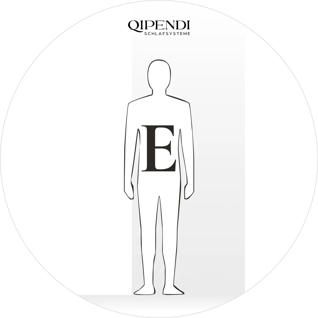E-Typen sind eher größere Menschen mit einer schlanken Statur. Die Anatomie ist so ausgerichtet, dass Schultern breiter als die Hüfte sind. Das Körpergewicht verteilt sich bei E-Typen im Liegen recht gleichmäßig auf den Schulter-, Bauch- und Beckenbereich.